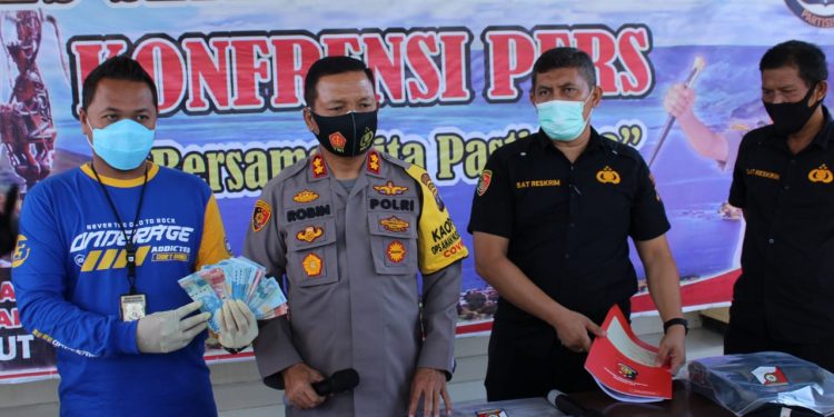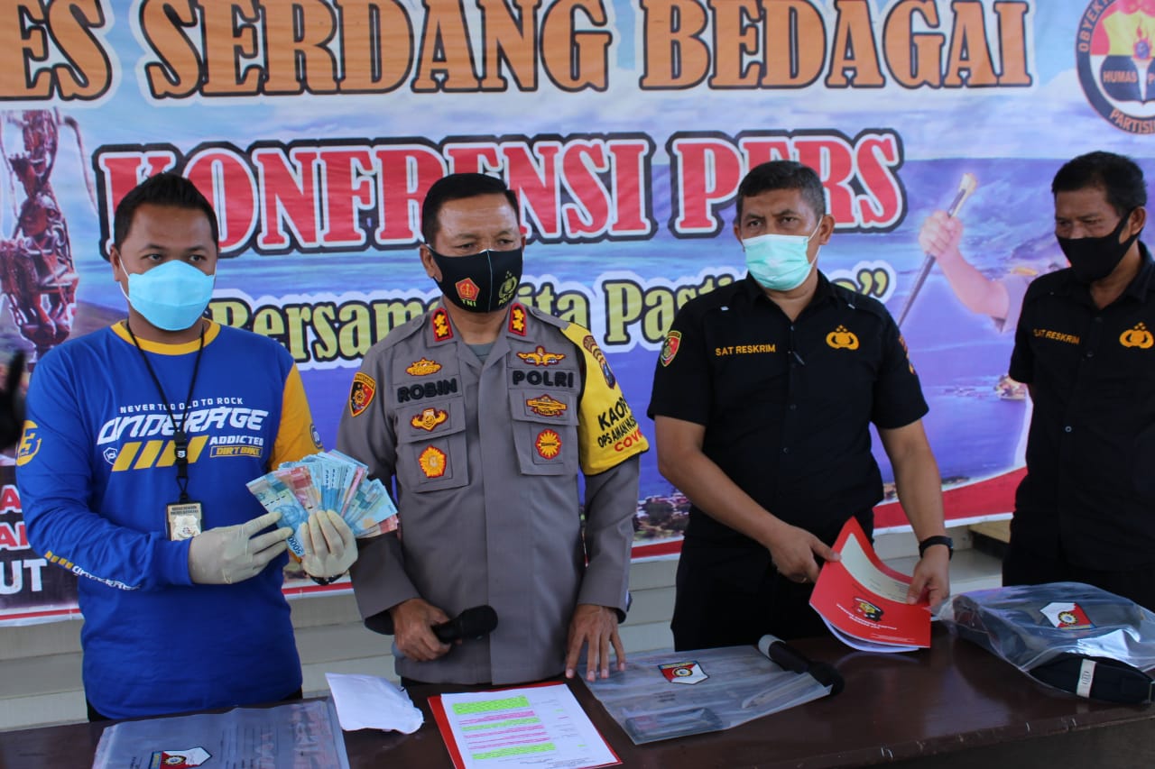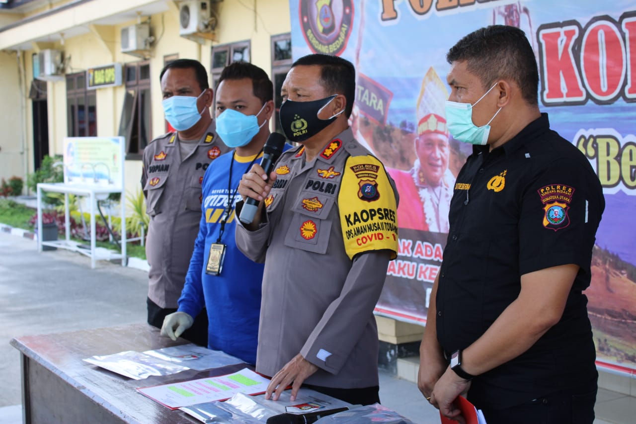 Kapolres Sergai, AKBP Robin Simatupang didampingi Kasat Reskrim, AKP Pandu Winata, Kasubbag Humas, AKP Sopiyan, Kanit Tipikor, Ipda Edward Sidauruk, Rabu (14/10/2020), dalam konferensi pers mengatakan, tersangka bernama Bahar Muharram (26), warga Jalan Veteran Pasar VII, Dusun IX, Desa Manunggal, Kecamatan Labuhan Deli, Kabupaten Deli Serdang.