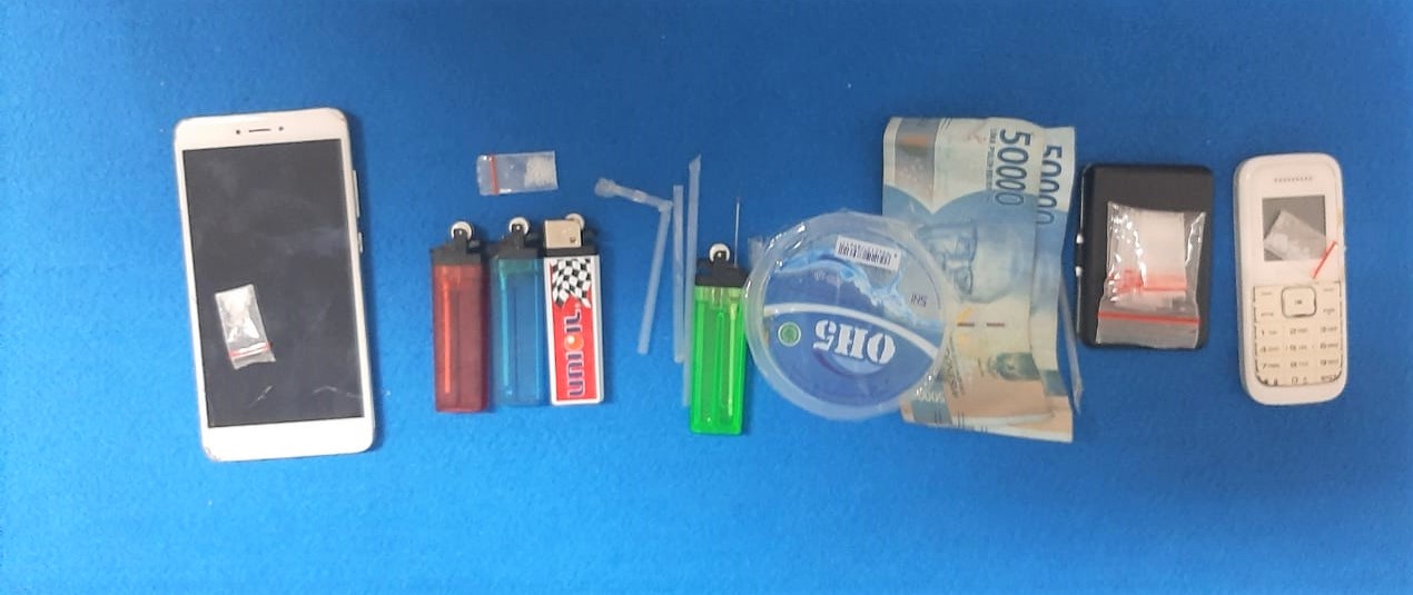 Selain barang bukti sabu tersebut, Personil juga menemukan satu Unit timbangan digital, satu Unit bong yang terbuat dari kemasan minuman mineral OH5 lengkap dengan pipet dan pipa kaca bekas bakar yang berisi narkotika jenis sabu, satu mancis yang ada jarum sumbu, satu sendok terbuat dari pipet.