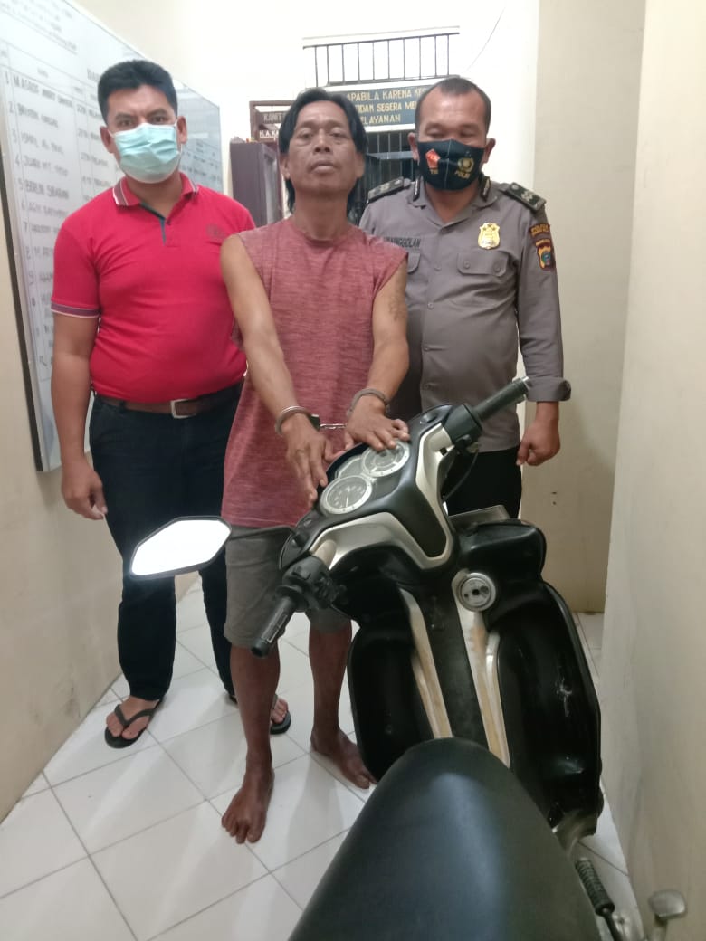 TASLABNEWS, TANJUNGBALAI – Terbukti melakukan aksi pencurian sepedamotor di Kota Tanjungbalai, Riston Siringo-ringo (42), warga Lorong Sitio-tio, Desa Pardomuan Nauli, Kecamatan Pematang Bandar, Kabupaten Simalungun akhirnya di amankan unit Reskrim Polsek Datuk Bandar, Polres Tanjungbalai.