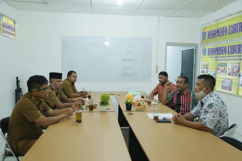 TASLABNEWS, LABUHANBATU – Kepala Dinas Komunikasi Dan Informatika (Kadiskominfo) Labuhanbatu, Rajid Yuliawan SKom menerima kunjungan Kadiskominfo Indragiri Hulu (Inhu), Jawater Situmorang didampingi empat stafnya.