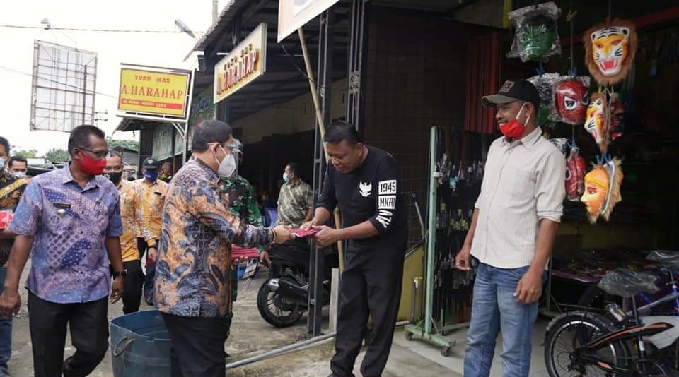 TASLABNEWS, LABUHANBATU – Pjs Bupati Labuhanbatu, Drs H Mhd Fitryus SH.MSP selalu menginginkan masyarakat Labuhanbatu selalu tetap menjalankan protokol kesehatan Covid-19. Hal ini dibuktikannya dengan membagikan 1.000 lembar masker kepada masyarakat, pengunjung maupun pedagang, di seputaran kota Negeri lama Kecamatan Bilah Hilir, Kamis (12/11/2020)
