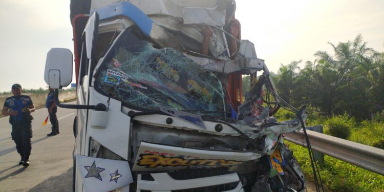 Kecelakaan lalulintas itu terjadi di Jalan Toll JMKT KM 56- 700, tepatnya jalur Tebing Tinggi menuju arah Medan (Jalur B), Desa Jati Mulyo, Kecamatan Perbaungan, Kabupaten Sergai, Selasa (3/11/2020) sekira pukul 07.30 WIB.