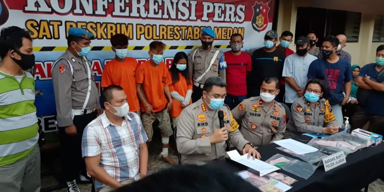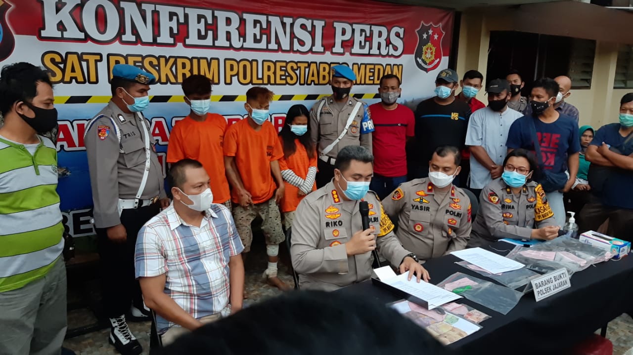 Pelaksanaan konferensi pers dipimpin Kapolrestabes Medan Riko Sunarko. Dalam konfrensi pers tersebut dihadirkan tiga tersangka yakni YP als W (23) warga, Jalan Paya Bakung, Dusun VII, Desa SM Diski, Kecamatan Sunggal, Kabupaten Deli Serdang.