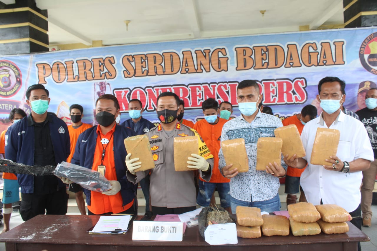TASLABNEWS- Satuan Reserse Narkoba Polres Serdang Bedagai berhasil menggagalkan peredaran Narkoba jenis daun ganja seberat 14,2 Kg dari tersangka Musyafar alias Jafar (40).