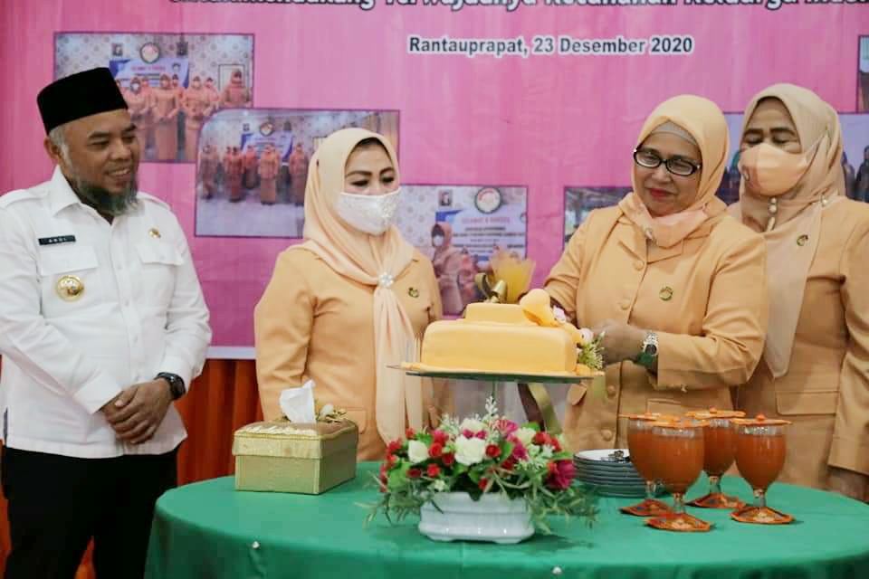 TASLABNEWS, LABUHANBATU – Bupati Labuhanbatu H.Andi Suhaimi Dalimunthe, ST.MT, hadir memeriahkan HUT Dharma Wanita Persatuan (DWP) Kabupaten Labuhanbatu ke-21 di Aula gedung PKK Kabupaten Labuhanbatu jalan WR.Supratman Rantauprapat Kecamatan Rantau Utara, Rabu (23/12/2020).