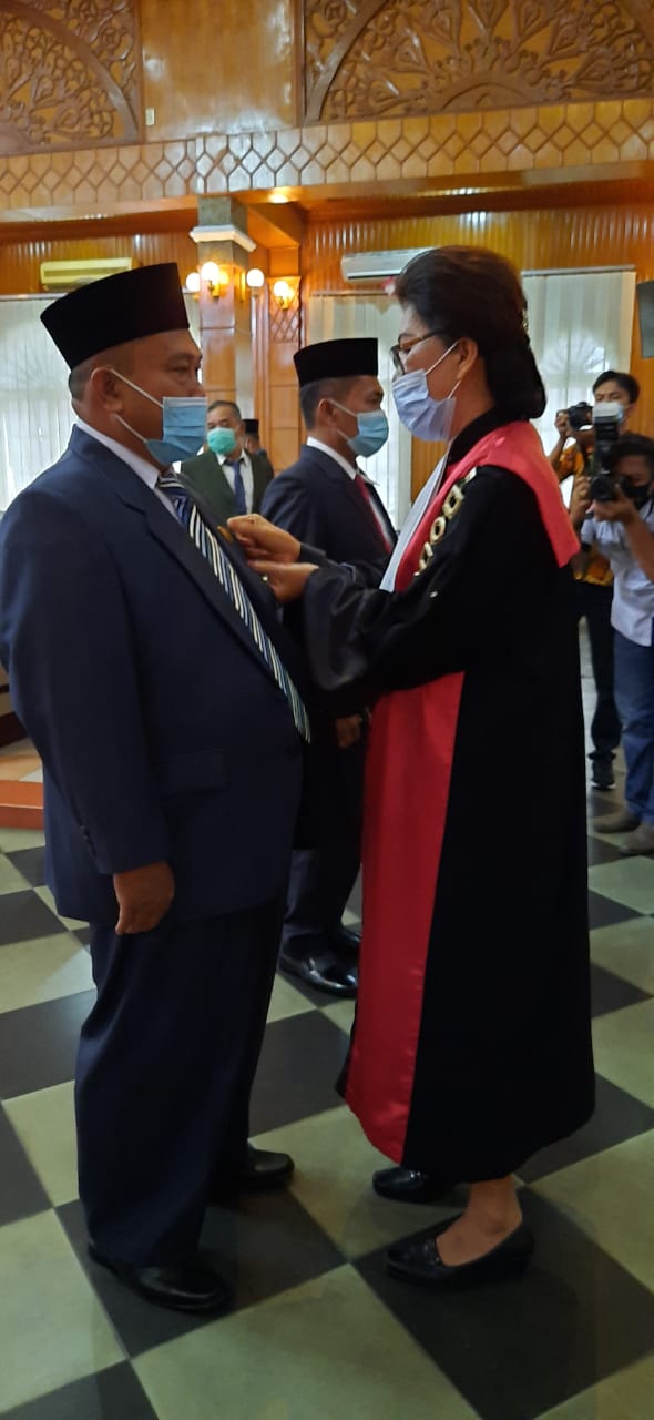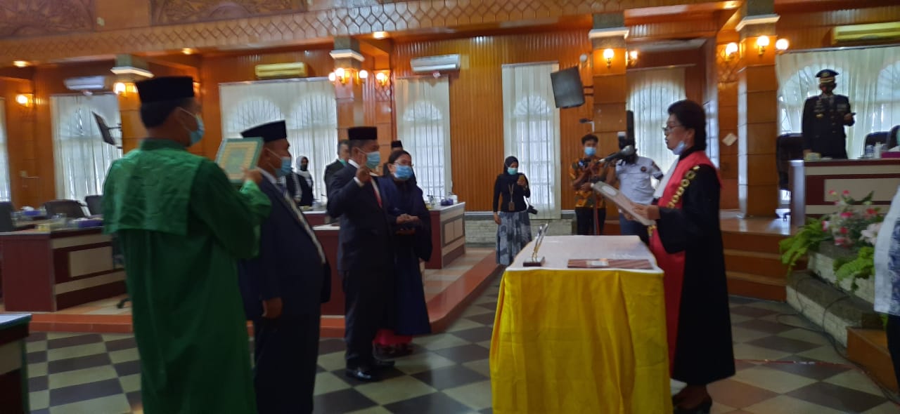 Pada kegiatan ini Ketua Pengadilan Negeri Kisaran Dr. Ulina Marbun, SH, MH mengambil Sumpah/Janji Penganti Antar Waktu Anggota DPRD Kabupaten Asahan Masa Jabatan Tahun 2019-2024 yang dilantik. (Ril/Syaf)