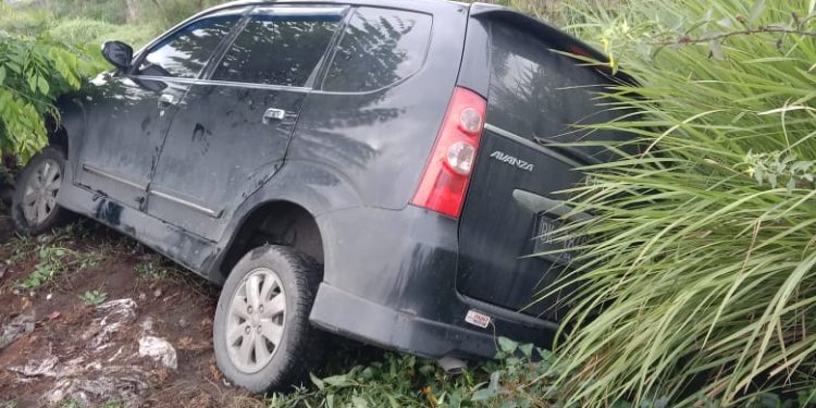 TASLABNEWS – Diduga sopir tidak konsentrasi lantaran mengantuk, sebuah mobil minibus jenis Toyota Avanza terjungkal masuk parit.