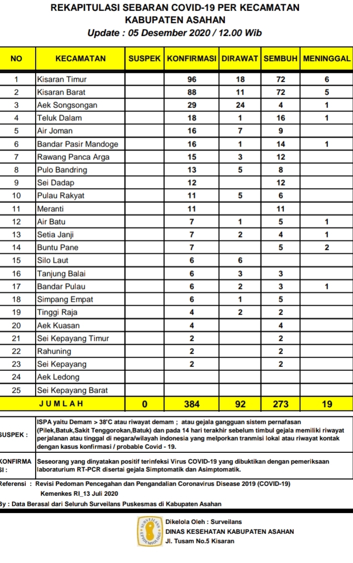 Menurut Dayat, data itu diperoleh dari tim gugus tugas Covid 19 Kabupaten Asahan.