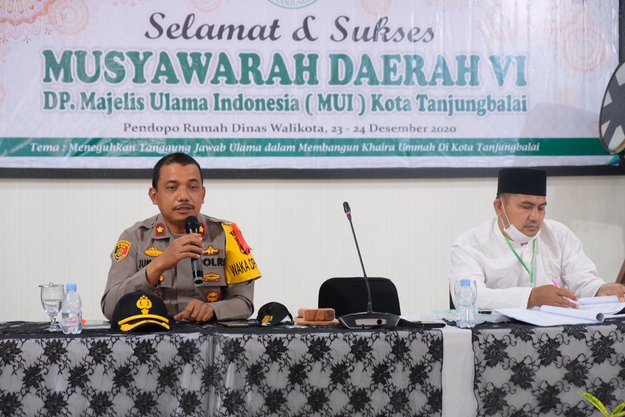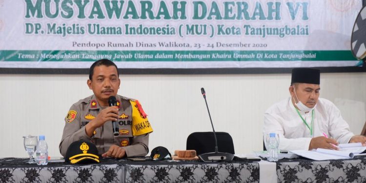 TASLABNEWS, TANJUNGBALAI- Waka Polres Tanjungbalai hadiri Musyawarah Daerah VI DP. Majelis Ulama Indonesia (MUI) Kota Tanjungbalai, Kamis (24/12/2020) di Pendopo Rumah Dinas Walikota Tanjungbalai.