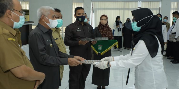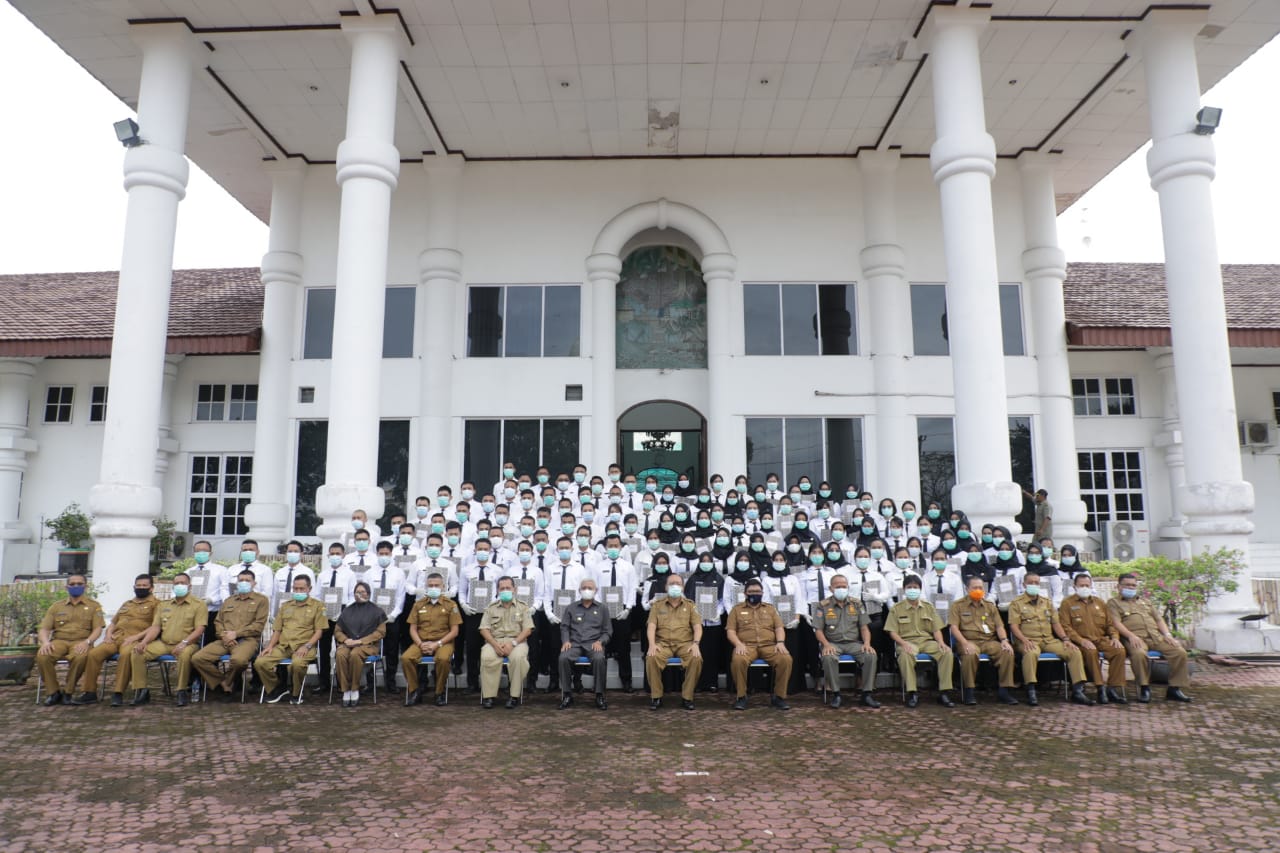 TASLABNEWS, ASAHAN – Sebanyak 106 CPNS di lingkungan Pemerintah Kabupaten (Pemkab) Asahan formasi tahun 2019 menerima Surat Keputusan (SK) Bupati Asahan tentang pengangkatan Calon Pegawai Negeri Sipil (CPNS) di lingkungan Pemkab Asahan Formasi Tahun 2021, Selasa (12/01/2021)