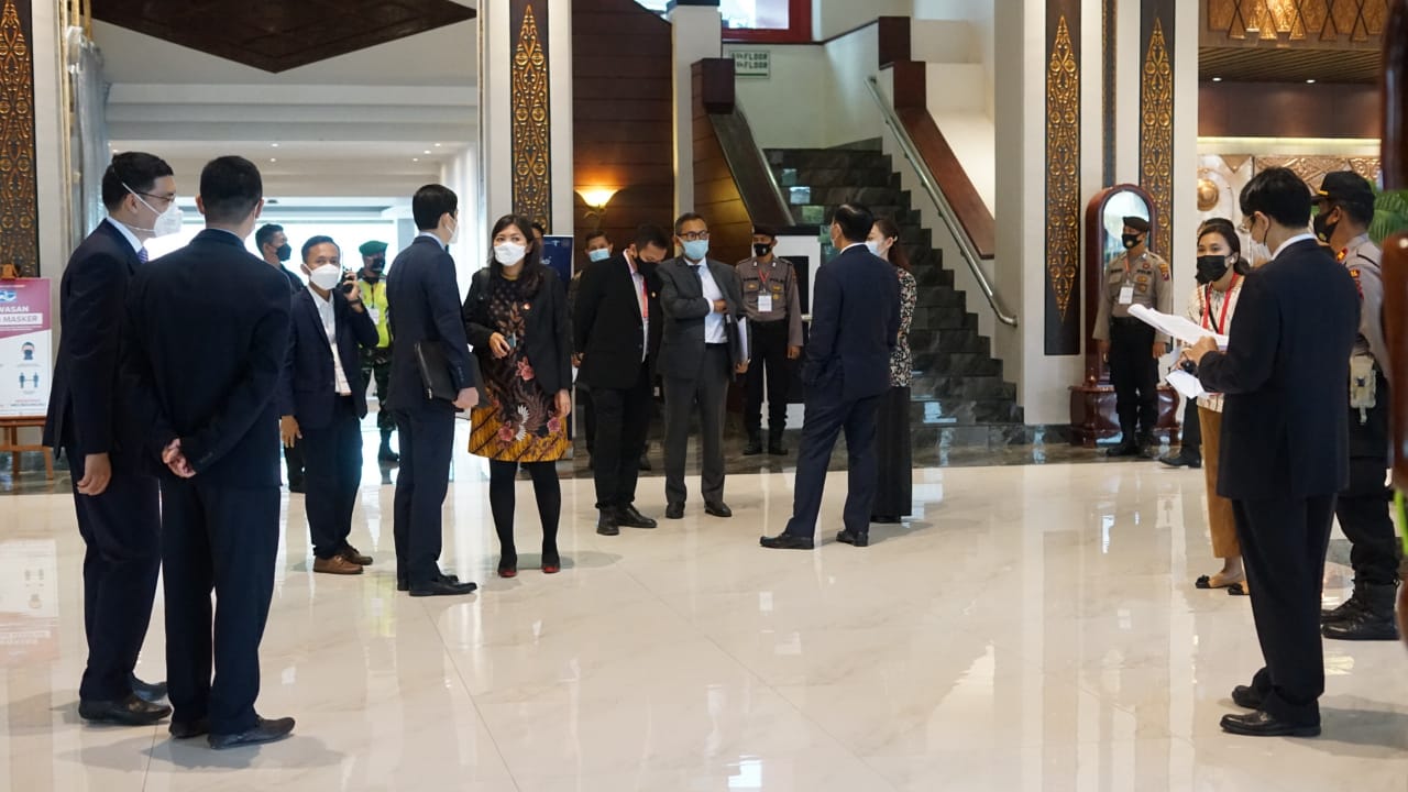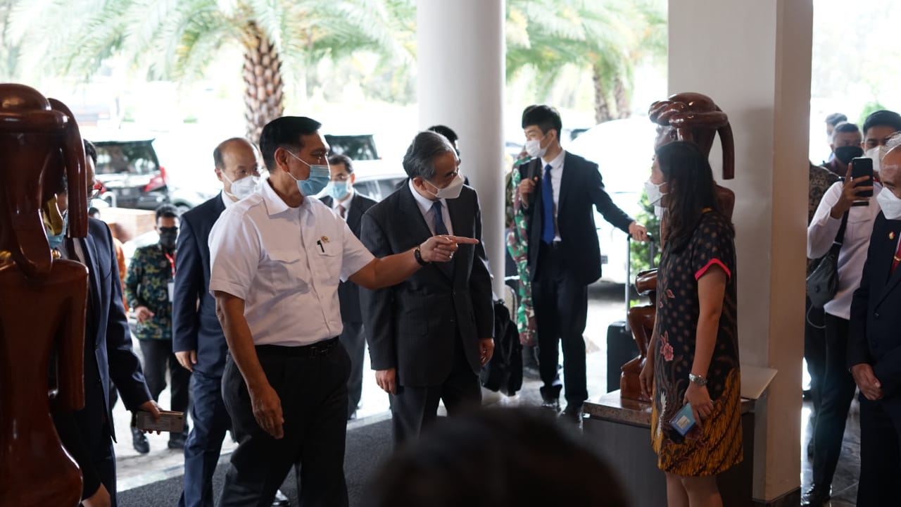 Kedatangan rombongan Menteri RRT langsung disambut oleh Menteri Koordinator Bidang Kemaritiman dan Investasi Indonesia Jenderal TNI (Purn) Luhut Binsar Pandjaitan, MPA didampingi para Delegasi Republik Indonesia bersama Bupati Simalungun JR Saragih, Kapolres Simalungun Akbp Agus Waluyo, S.I.K., Dandim 0207 Simalungun Letkol Inf. Roly Souhoka, S.I.P, dengan mengikuti prokol kesehatan Covid-19.