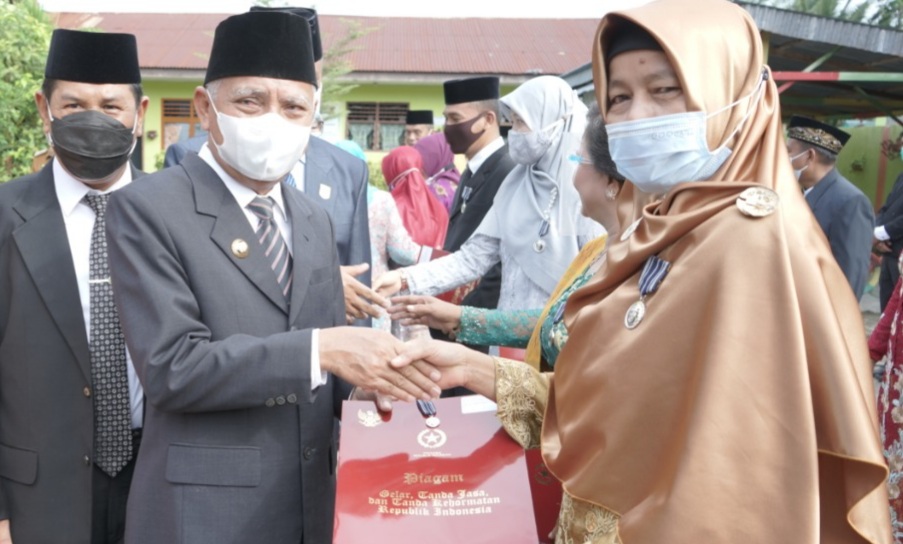 TASLABNEWS, ASAHAN – Sebanyak 55 Aparatur Sipil Negara (ASN) yang berdinas di Kementerian Agama Kabupaten Asahan menerima Satya Lencana Karya Satya. Tanda kehormatan tersebut diberikan Bupati Asahan, H Surya BSc pada Upacara Hari Amal Bakti Kementerian Agama ke-75, Selasa (05/01/2021).