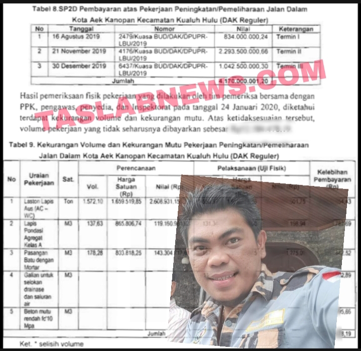 Proyek Peningkatan Jalan di Aek Kanopan Rp4,170 Miliar juga jadi Temuan BPK