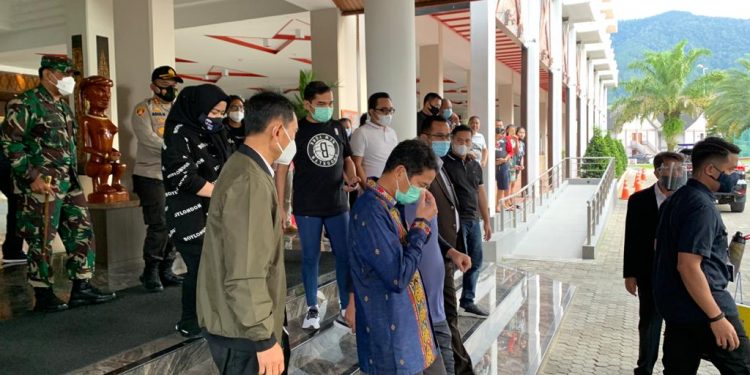 TASLABNEWS, SIMALUNGUN- Kapolres Simalungun AKBP Agus Waluyo SIK menyambut sekaligus memimpin pengamanan kunjungan kerja (kunker) Menteri Pariwisata Ekonomi Kreatif (Menparekraf) RI Sandiago di Kota Parapat, Kamis (31/12/2020) pagi sekira pukul 08.00 WIB.