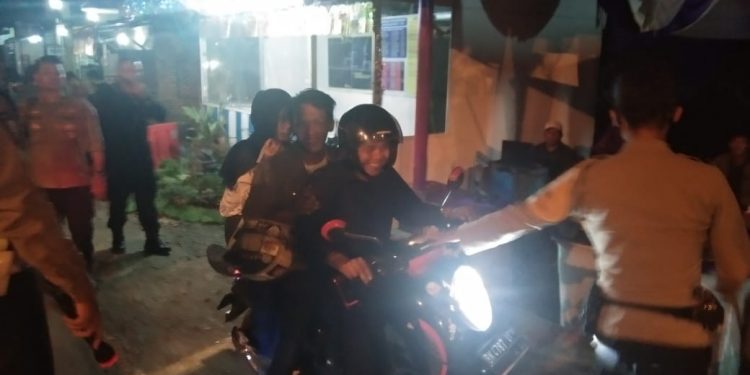 Rata rata warga yang akan ke kota masih remaja, bahkan banyak yang mengabaikan keselamatan, tidak pakai helm serta bonceng 3 naik sepedamotor. (Edi/Syaf)