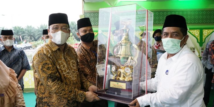 Ketua Dewan Hakim Drs. H. Abdul Rasyid didampingi Sekretaris Dewan Hakim Drs H Mahmuddin Lubis MM membacakan pemenang pada MTQ ke-52 tingkat kabupaten Asahan tahun 2021.