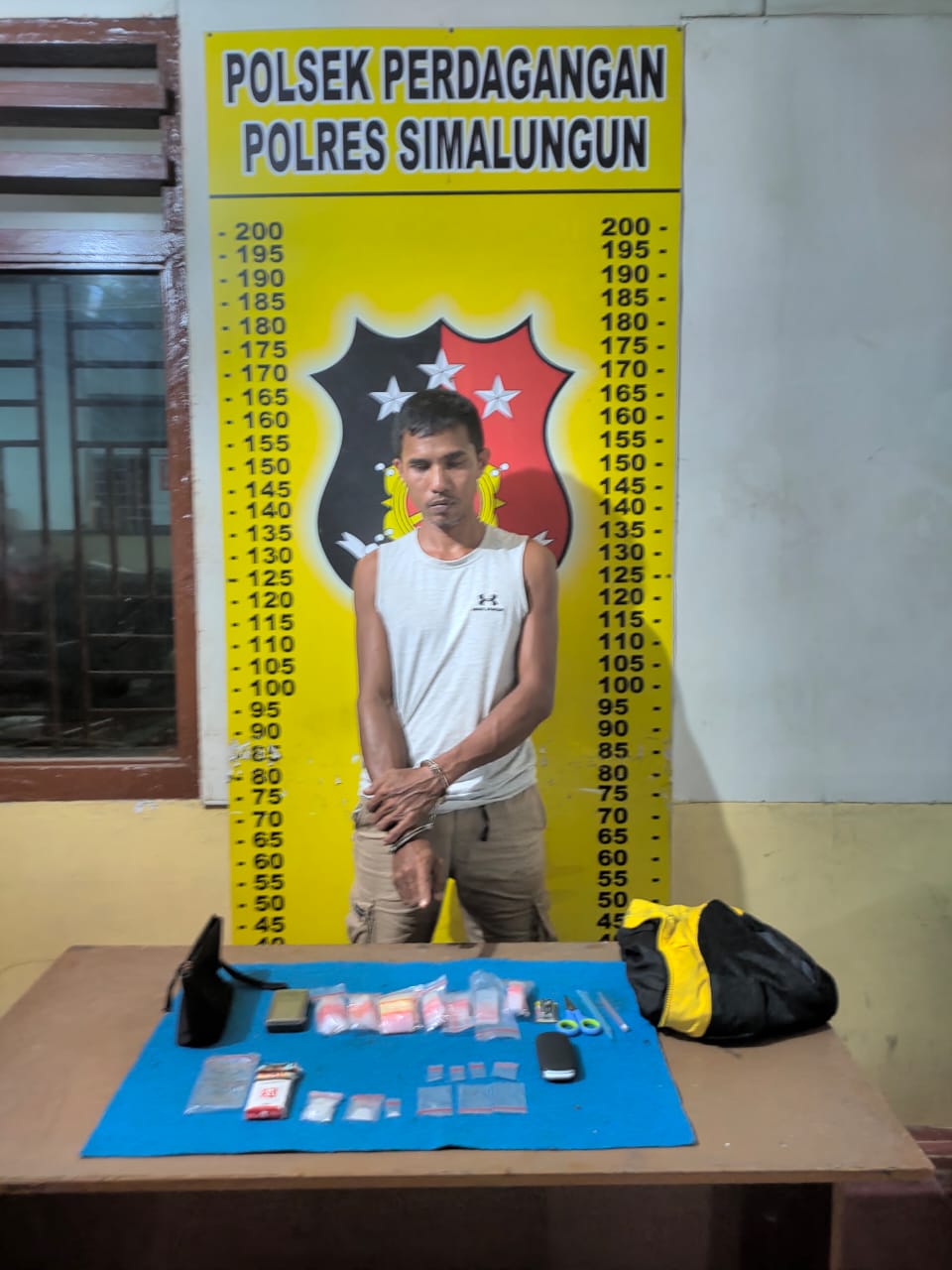 TASLABNEWS – Personel Polsek Perdagangan, Polres Simalungun meringkus tersangka narkoba jenis sabu di Nagori Perdagangan II, Kecamatan Bandar, Kabupaten Simalungun pada Senin (1/2/2021) malam.