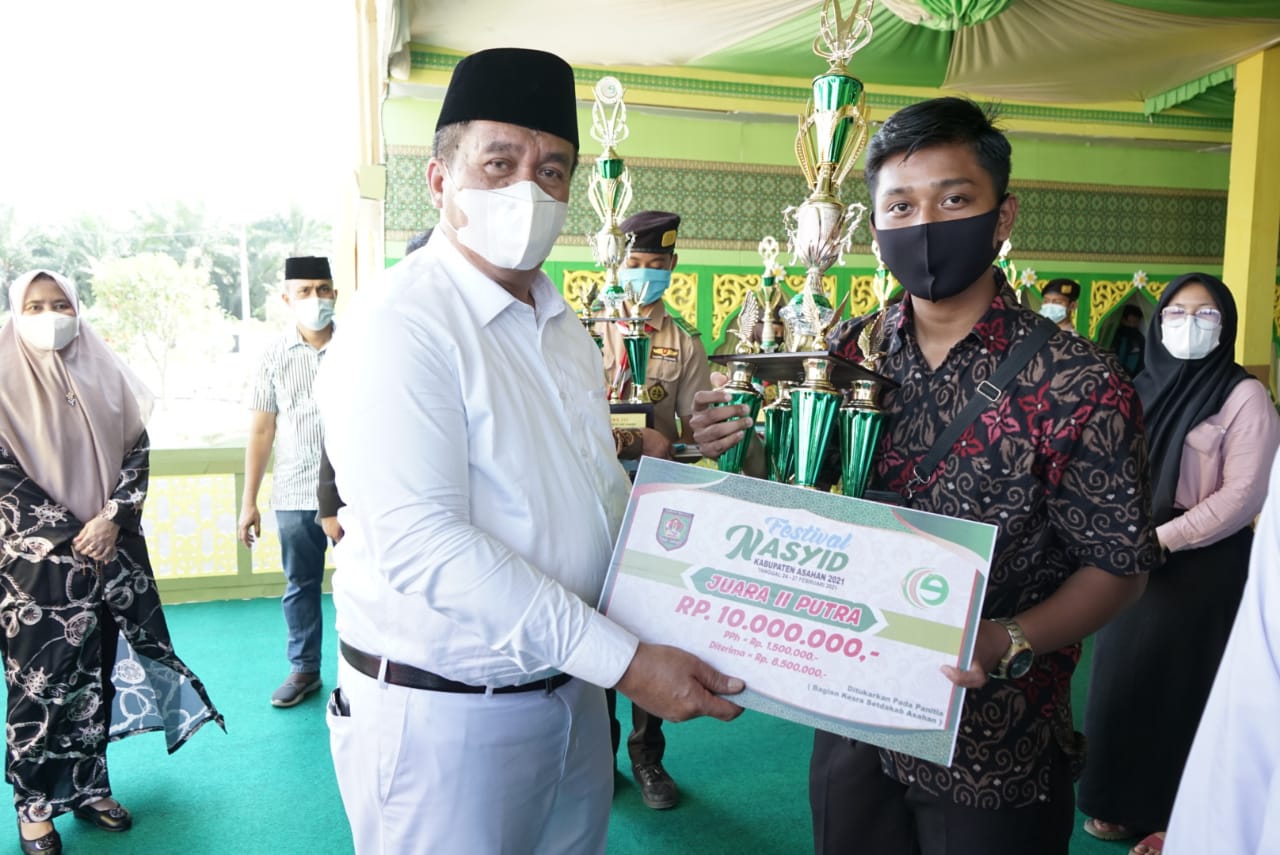 Kegiatan penutupan tersebut diakhiri dengan pengumuman pemenang yang disampaikan oleh Sekretaris Dewan Juri Festival Nasyid Tingkat Kabupaten Asahan Tahun 2021 Drs H Damanhuri Lubis, M. Pd dan dilanjutkan dengan penyerahan hadiah kepada pemenang oleh Wakil Bupati bersama dengan Unsur Forkopimda Kabupaten Asahan, Pj Sekretaris Daerah Kabupaten Asahan, Wakil Ketua TP PKK Kabupaten Asahan dan Ketua Dharma Wanita Kabupaten Asahan.