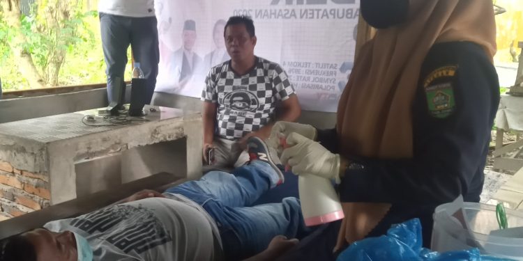 TASLABNEWS, ASAHAN- Sebagai bukti kepedulian kepada sesama, wartawan di Kabupaten Asahan gelar aksi donor darah, Jumat (19/2/2021) di warung jurnalis Asahan di depan GOR.