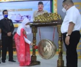 TASLABNEWS, LABUHANBATU- Sekretaris Daerah Provinsi Sumatera Utara (Sekdaprovsu) Dr Ir Hj Sabrina MSi lakukan pemukulan gong tanda dimulainya Musyawarah Perencanaan Pembangunan (Musrenbang) dalam rangka penyusunan Rencana Kerja Pemerintah Daerah (RKPD) Kabupaten Labuhanbatu Tahun 2022.