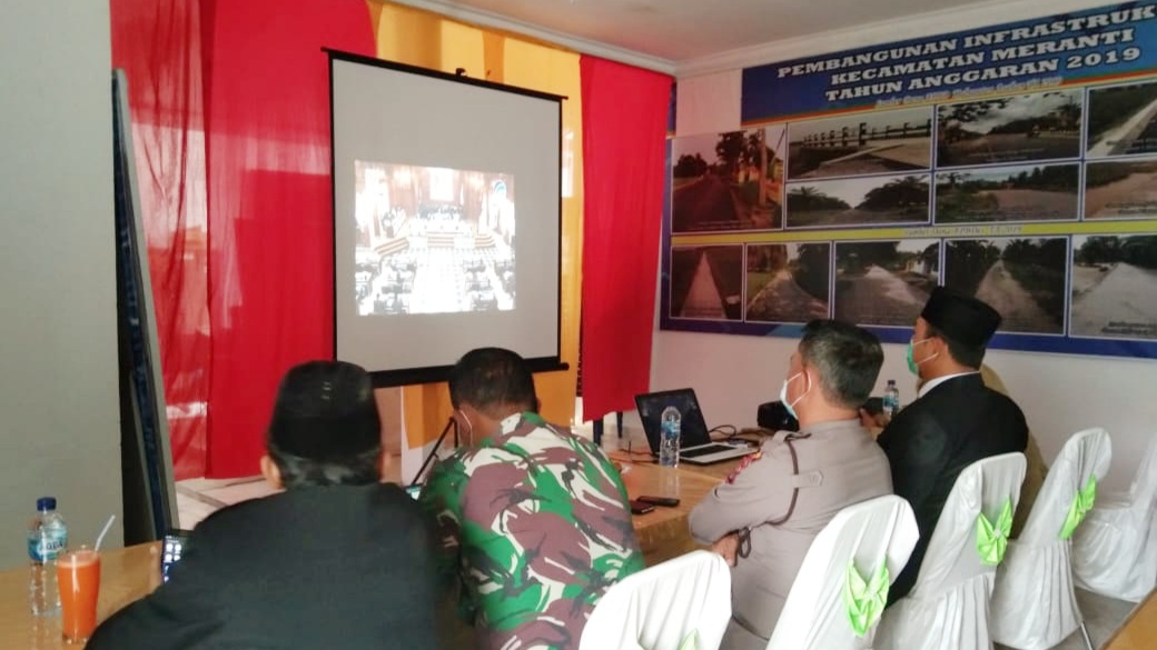 Di Kecamatan Meranti, siaran langsung peringatan hari jadi tersebut disaksikan oleh Camat Meranti bersama forkopincam Meranti di Aula Kantor Kecamatan Meranti, Senin (15/03/2021) pukul 09.30 WIB.