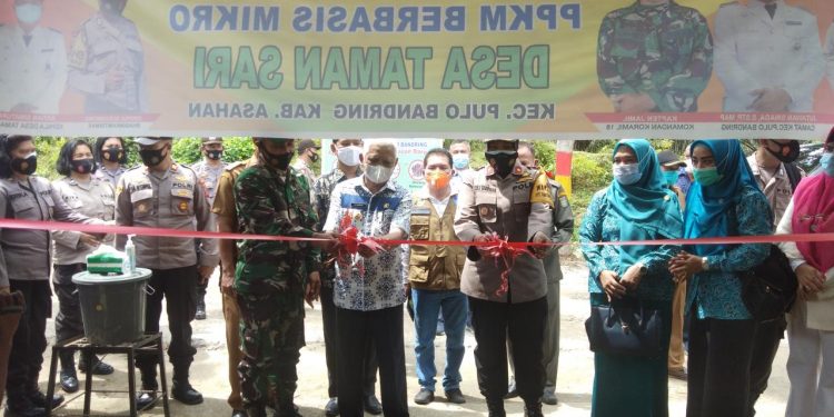 TASLABNEWS, ASAHAN-Desa Taman Sari, Kecamatan Pulo Bandring resmi menjadi Kampung Tangguh Berbasis Mikro. Peresmian itu dilakukan Bupati Asahan H Surya BSc dan Kapolres Asahan diwakili Wakapolres Asahan Kompol Sri Juliani SH, Dandim 0208 (Mewakili), Jumat, (05/03/2021).