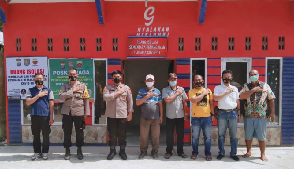 Kapolsek Kisaran Kota, Iptu Joy Ananda Putra Sianipar STrK mengunjungi fasilitas ruang isolasi penanganan Covid-19 kampung tangguh Desa Serdang, Kecamatan Meranti, Asahan.