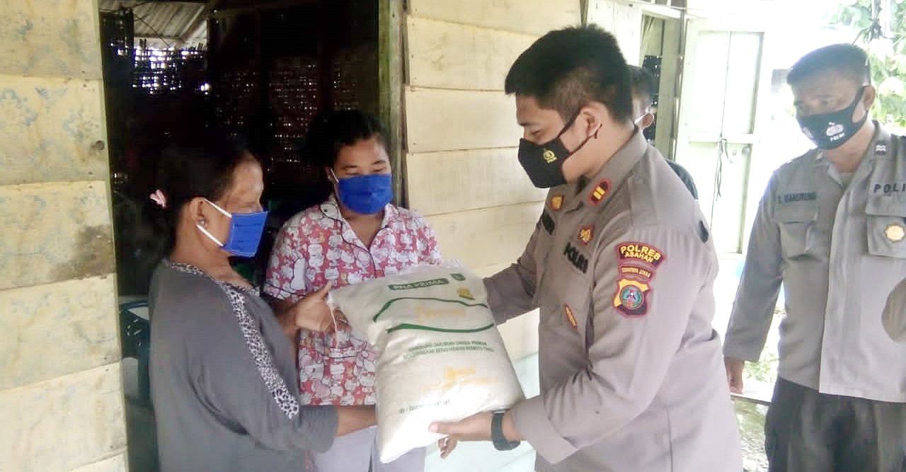 Dalam kegiatan pelaksanaan tersebut, Kapolsek Kisaran Kota didampingi Kanit Sabhara, Kaposyan Rawang Panca Arga dan Meranti, Bhabinkamtibmas Meranti serta Sekdes Panca Arga memberikan bantuan sembako kepada Ibu Boru Sianipar (59).