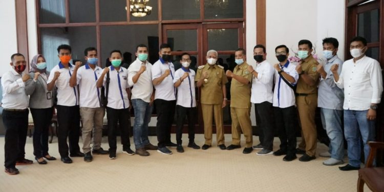 Pengurus AFKAB Asahan melakukan audensi ke Bupati Asahan, H Surya BSc didampingi Kepala Dinas Kepemudaan, Olahraga dan Pariwisata, Senin (22/03/2021), di Ruang Kerja Bupati Asahan.