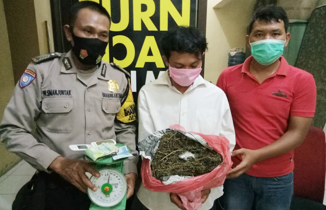 Menurut Panjaitan, barang bukti yang diamankan dari tersangka, Narkotika jenis ganja seberat 500 Gram atau setengah kilogram, satu unit handphone lipat merek Samsung warna putih, uang tunai sebesar Rp295.000.