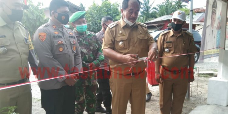 Peresmian posko siaga Kampung tangguh penanggulangan Covid-19 di Desa Serdang, Dusun 3 tersebut ditandai dengan pengguntingan pita yang dilakukan oleh Wakil Bupati Asahan.
