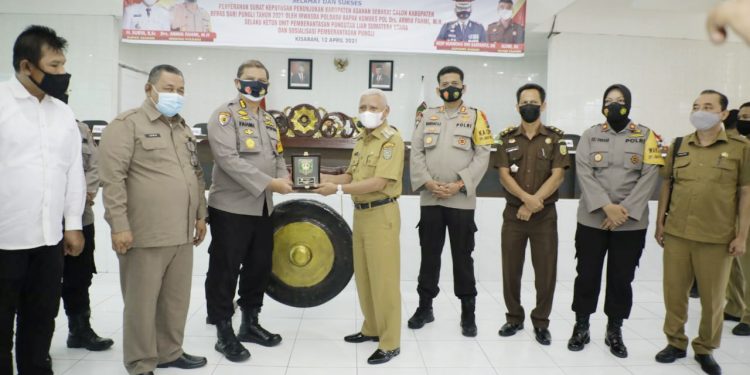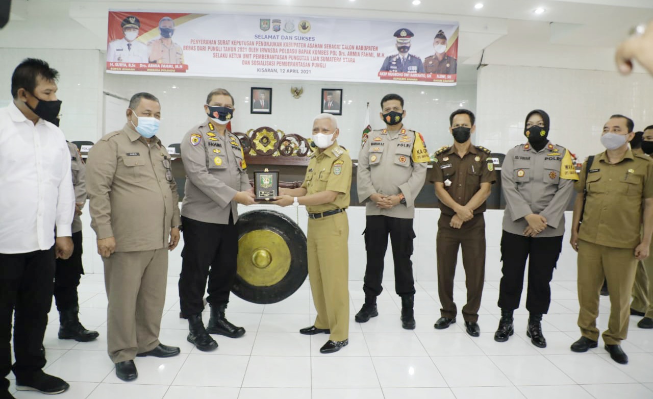 TASLABNEWS, ASAHAN – Pemerintah Kabupaten Asahan menerima Penyerahan Surat Keputusan Penunjukan sebagai Calon Kabupaten Bebas dari Pungli tahun 2021 dari Kapolda Sumut, Senin (12/04/2021).