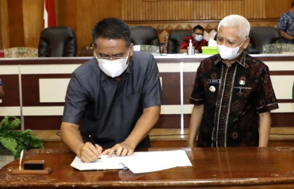 Sebelum menyampaikan pidato, Bupati Asahan, H Surya BSc bersama Ketua DPRD Kabupaten Asahan melakukan penandatanganan nota kesepakatan laporan hasil pembahasan awal RPJMD Kabupaten Asahan Tahun 2021-2026 tersebut.