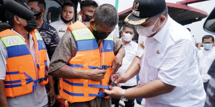 TASLABNEWS, ASAHAN – Dalam memberikan keamanan bagi nelayan Asahan saat pergi melaut, Wakil Bupati Asahan, Taufik Zainal Abidin SSos MSi membagikan 100 unit life jacket (jaket keselamatan/jaket pelampung) kepada nelayan di perairan Bagan Asahan, Kabupaten Asahan.