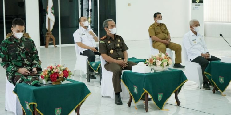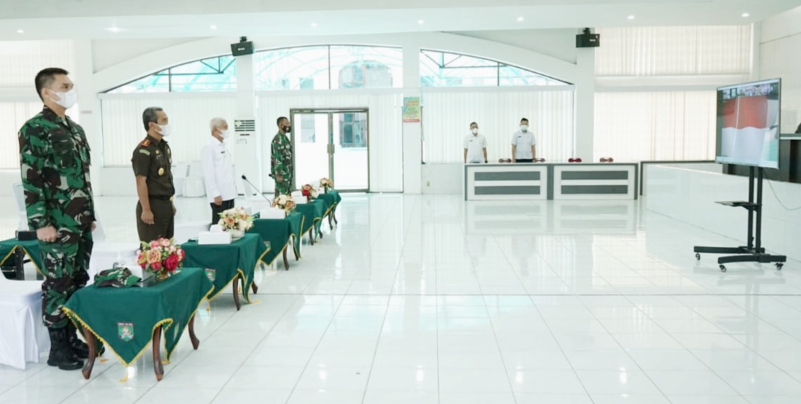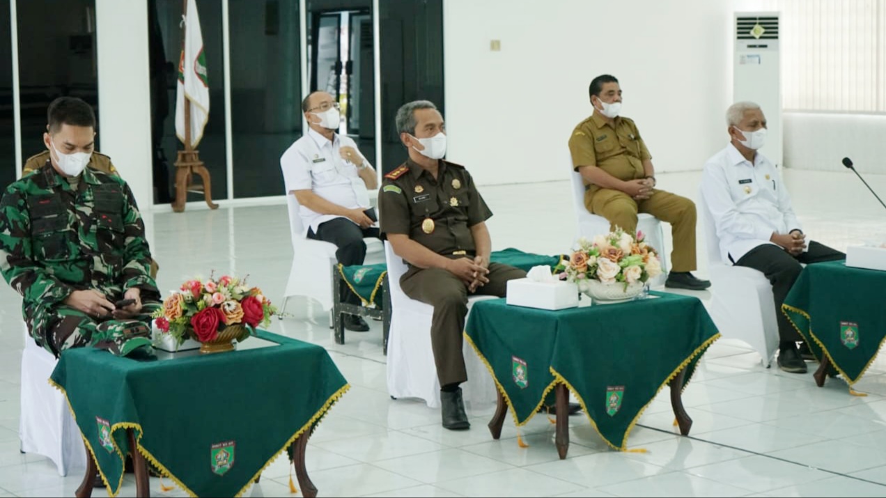 Rapat Koordinasi (Rakor) oleh Presiden Republik Indonesia, Ir H Joko Widodo, dengan Kepala Daerah di Indonesia secara virtual. Acara tersebut dipusatkan di Aula Melati Kantor Bupati Asahan, Rabu (28/04/2021).
