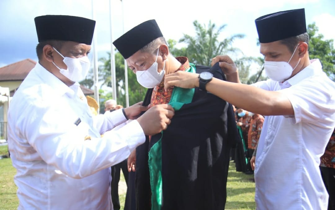 TASLABNEWS, LABUHANBATU – Pj Bupati Labuhanbatu, Mulyadi Simatupang melantik dan mengambil sumpah Dewan Hakim dan Juri pada kegiatan Musabaqah Tilawatil Quran (MTQ) ke 50 dan Festival Nasyid ke 35 di Lapangan SMKN 2 Rantauprapat, Kecamatan Bilah Barat, Kabupaten Labuhanbatu, Rabu (19/05/2021) sore.
