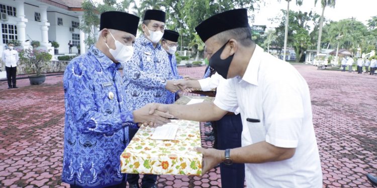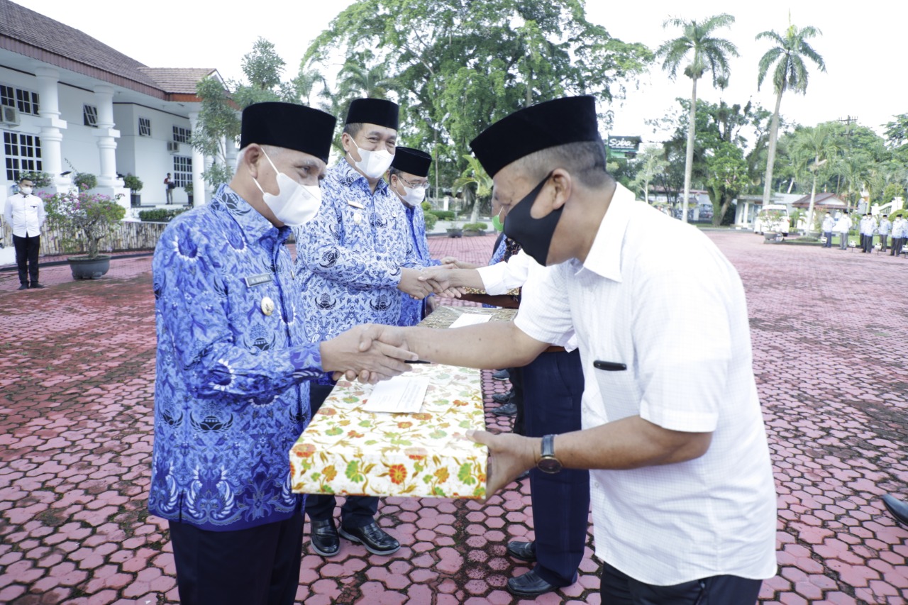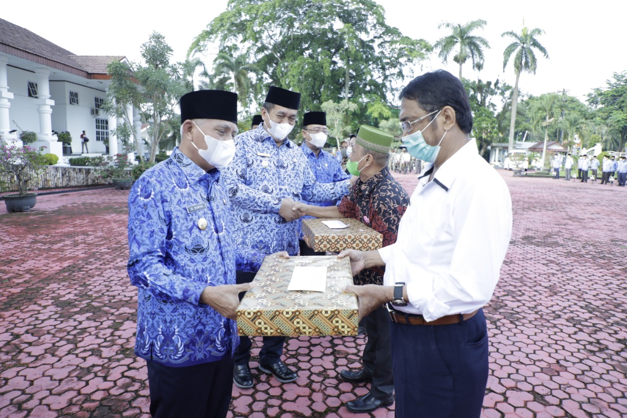 Menutup rangkaian kegitan upacara tersebut, Bupati Asahan memyampaikan penali kasih kepada ASN yang memasuki masa pensiun dan bantuan duka cita kepada Ahli Waris ASN yang meninggal dunia.
