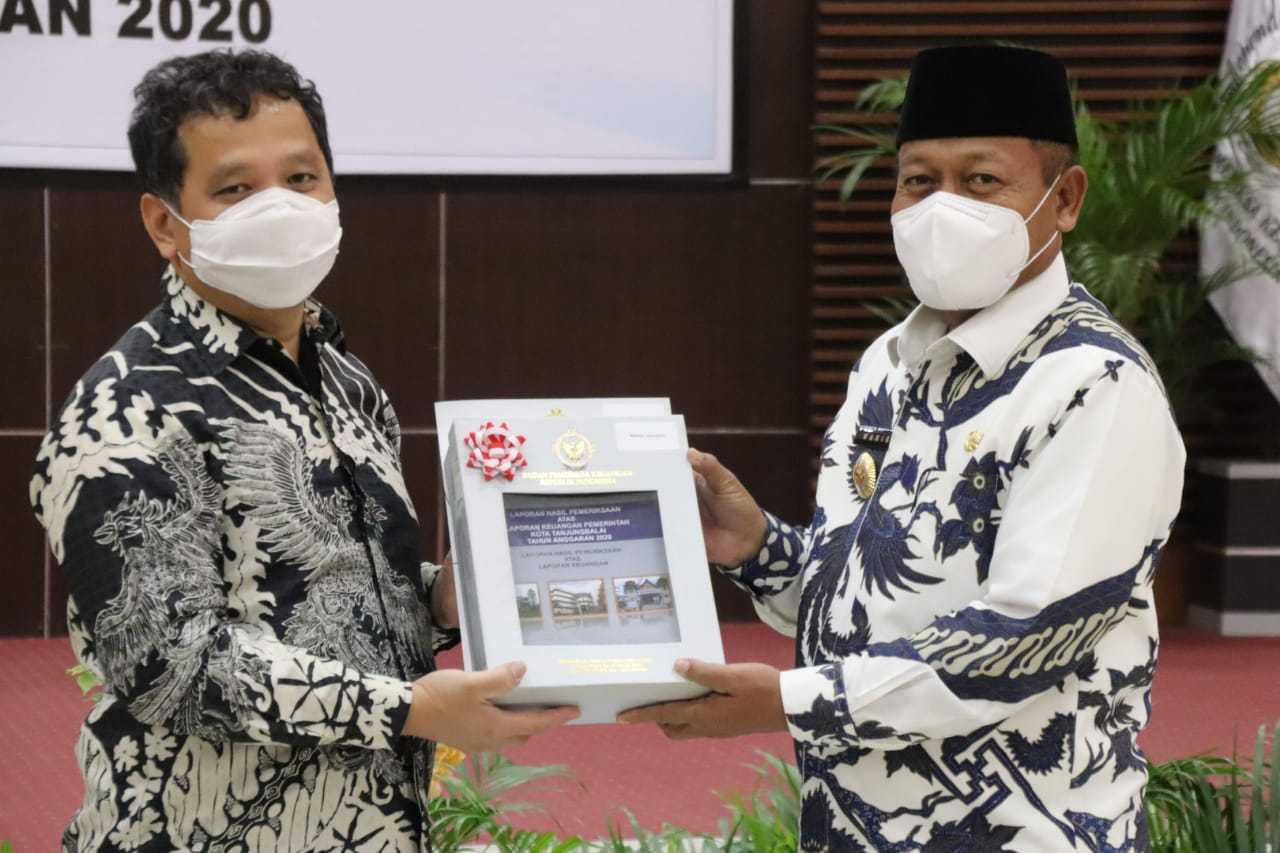 Laporan Hasil Pemeriksaan (LHP) BPK RI Perwakilan Sumut atas LKPD Kota Tanjungbalai TA 2020 tersebut langsung diserahkan oleh Kepala BPK Perwakilan Sumut, Eydu Oktain Panjaitan, SE MM Ak CA CSFA kepada Pelaksana Tugas (Plt) Wali Kota Tanjungbalai, H Waris Thalib SAg MM dan Ketua DPRD Tanjungbalai, Tengku Eswin ST di aula Kantor BPK RI Perwakilan Sumut di Medan, Jumat (28/5/2021) siang.