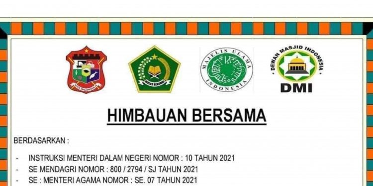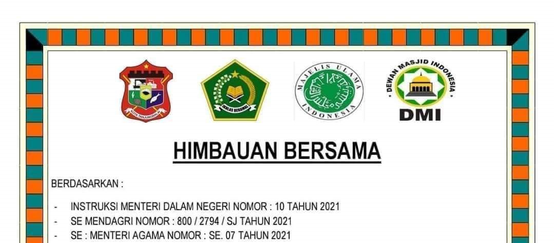 Imbauan tersebut sesuai Instruksi Kementerian Agama No 07 Tahun 2021 tentang panduan penyelenggaraan Salat Idul Fitri Tahun 1442 Hijriah/2021 M disaat pandemi Covid-19.