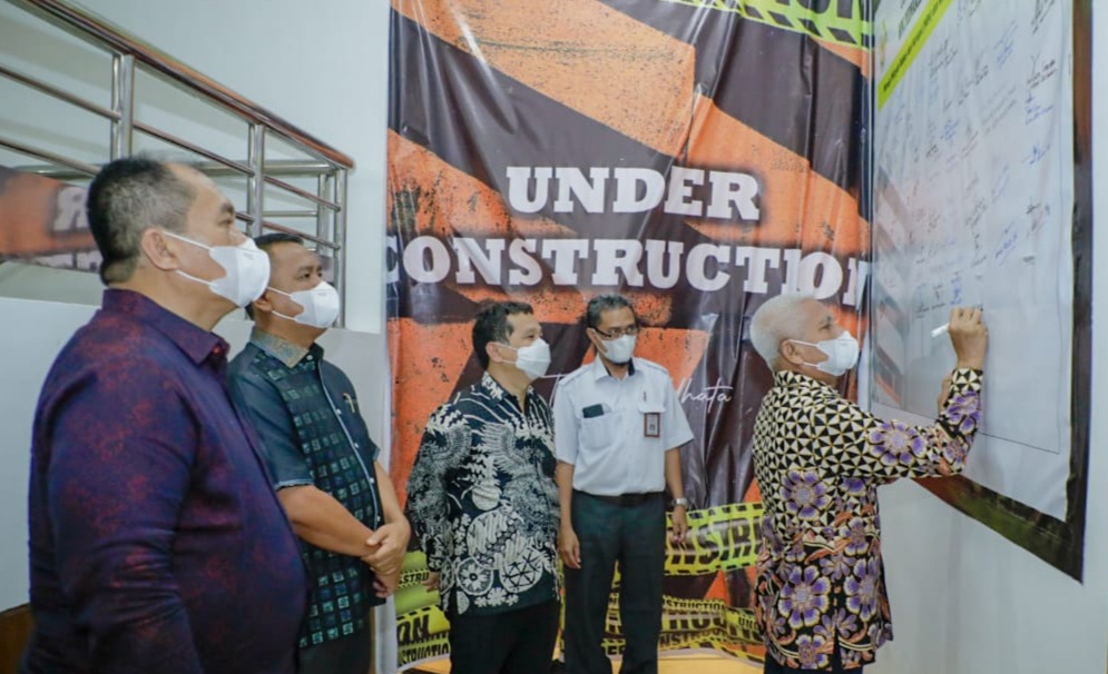 Diakhir acara Bupati, Wakil Bupati Dan Ketua DPRD Asahan menandatangani dukungan Pembangunan Zona Integritas BPK Perwakilan Provsu Menuju Wilayah Bebas dari Korupsi (WBK) dan Wilayah Birokrasi Bersih Melayani (WBBM).
