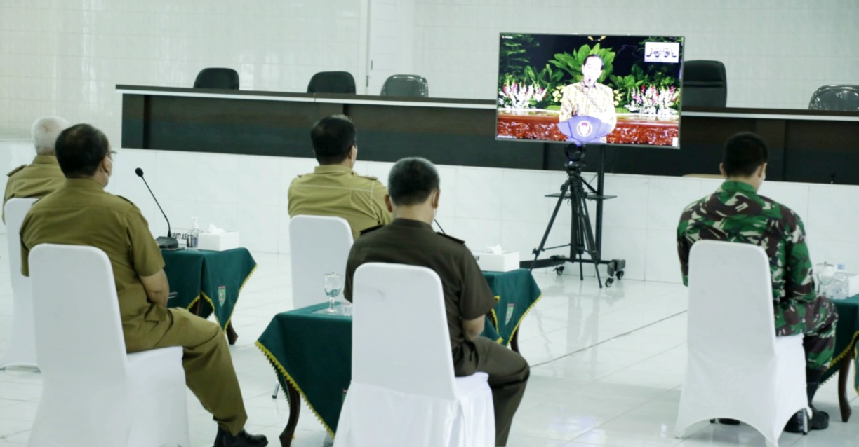 Dalam pengarahan yang diikuti Bupati dan Wakil Bupati beserta Forkopimda Asahan, Ir. Joko Widodo (Jokowi) mengatakan, agar Kepala Daerah se-Indonesia berhati-hati dan waspada terhadap potensi kenaikan Covid-19 pada pasca lebaran 1442 H.