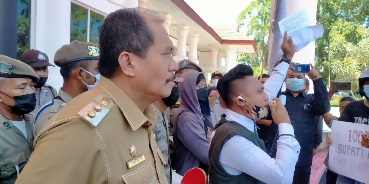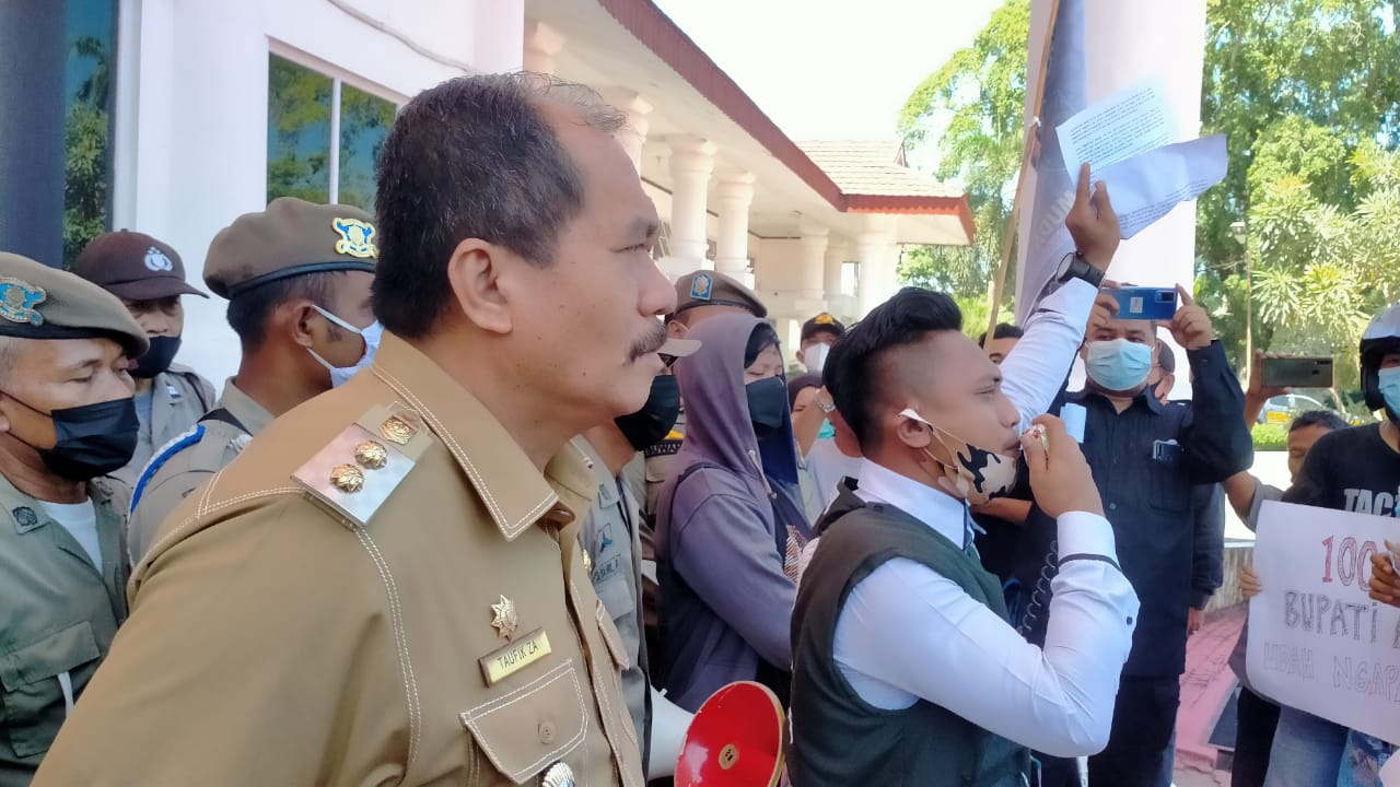 TASLABNEWS, ASAHAN-Generasi Muda Perkumpulan Persaudaraan Masyarakat Asahan (GM PPMA) menggelar Aksi unjukrasa di halaman Kantor Bupati Asahan mempertanyakan hasil capaian kinerja Bupati Asahan H.Surya Bsc selama 100 hari kerja pasca dilantik, Selasa (08/06/2021). Aksi ini sempat ricuh.