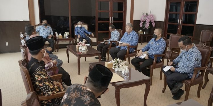 TASLABNEWS, ASAHAN-Bupati Asahan H Surya BSc menerima audenasi Pengurus Majelis Daerah Korps Alumni Himpunan Mahasiswa Islam (KAHMI) Kabupaten Asahan, Kamis (17/06/2021).