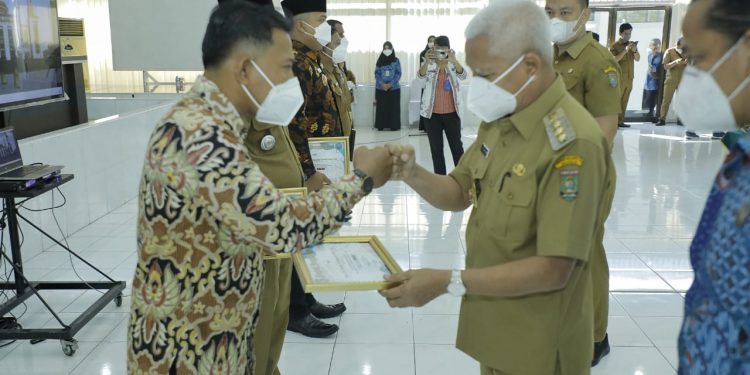 TASLABNEWS, ASAHAN-Bupati Asahan H Surya BSc menyerahkan sertifikat penyelenggaraan Desa Bersih Narkoba (Desa Bersinar) kepada empat desa.