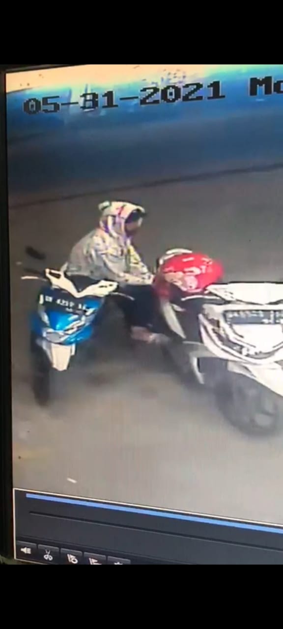 Selang tidak berapa lama, pelaku yang telah mengikuti korban datang dan berhenti di sisi kanan sepedamotor korban. Sebelum melakukan aksinya, pelaku lebih dulu memperhatikan kondisi sekitar.