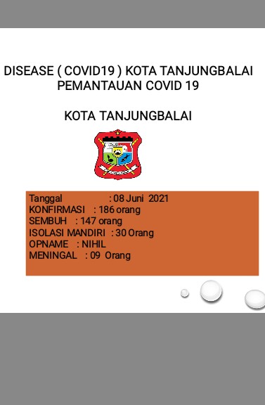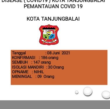 TASLABNEWS, TANJUNGBALAI – Kasus Covid-19 di Kota Tanjungbalai setiap hari terus bertambah. Menurut data dari Dinas Kesehatan Pemerintah Kota (Pemko) Tanjungbalai per Selasa (8/6/2021), terdapat 186 kasus terkonfirmasi atau bertambah sebanyak 3 orang jika dibandingkan dengan data per Senin (7/6/2021) sebanyak 183 orang.
