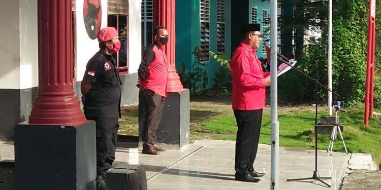 TASLABNEWS, TANJUNGBALAI – DPC PDI Perjuangan Kota Tanjungbalai gelar upacara peringatan hari lahir (harlah) Pancasila tanggal 1 Juni. Ketua DPC PDI Perjuangan Kota Tanjungbalai, Surya Dharma AR SH memimpin upacara yang dilaksanakan di depan Kantor DPC PDI Perjuangan di Jalan Gaharu, Kota Tanjungbalai, Selasa (1/6/2021).