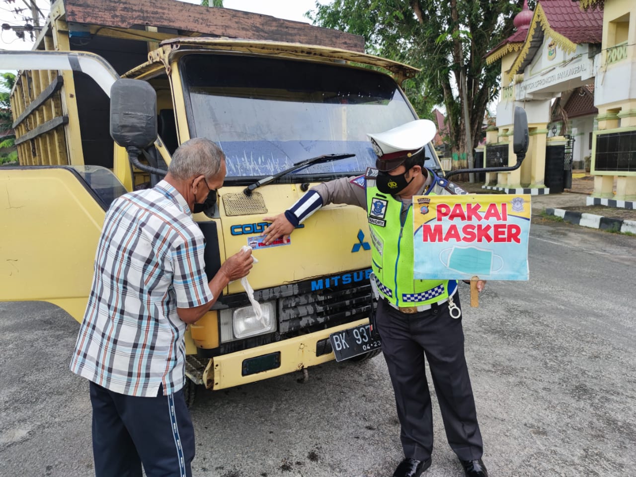 “Kegiatan penempelan stiker bertuliskan ‘Ayo Pakai Masker’ tersebut dilakukan terhadap setiap kendaraan yang ada di Jalan Gereja, Jalan Imam Bonjol, dan Jalan Mesjid, Jalan Jend. Sudirman, Jalan Suprapto, Kota Tanjungbalai” terangnya.