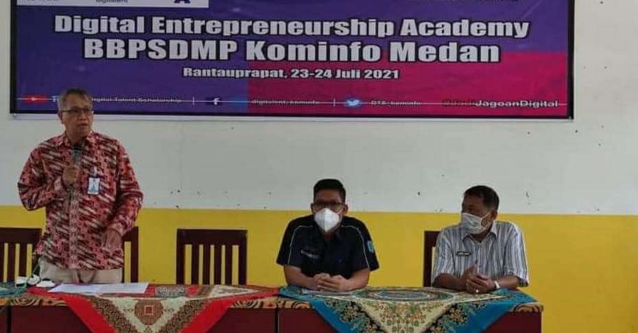 TASLABNEWS.COM, LABUHANBATU – Balai Besar Pengembangan Sumber Daya Manusia (BBPSDM) dan Penelitian Kominfo Medan, Sumatera Utara, Bekerja sama dengan Dinas Kominfo Labuhanbatu dan Dinas Koperasi UKM Labuhanbatu mengadakan Pelatihan Digital Entrepreneurship Academy (DEA).