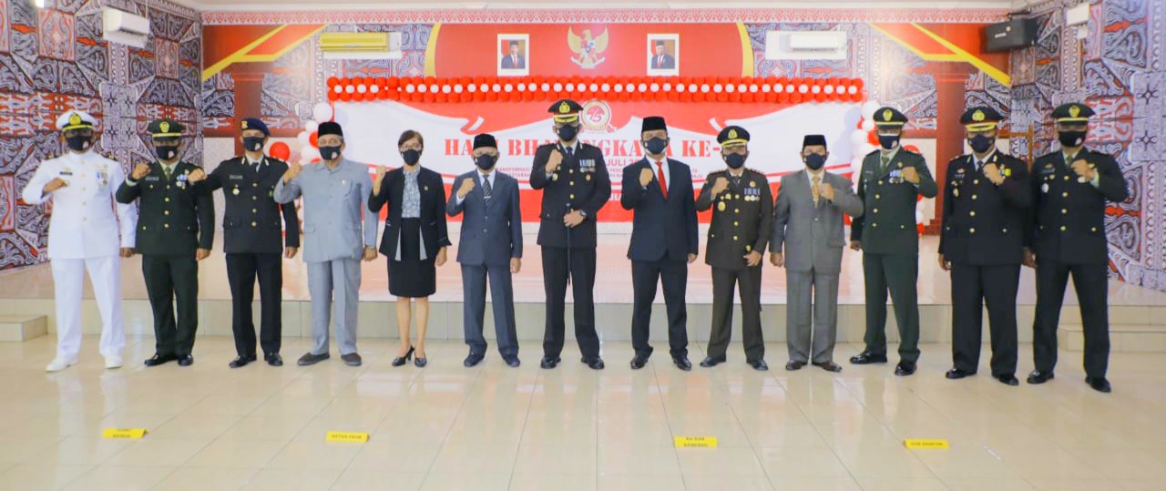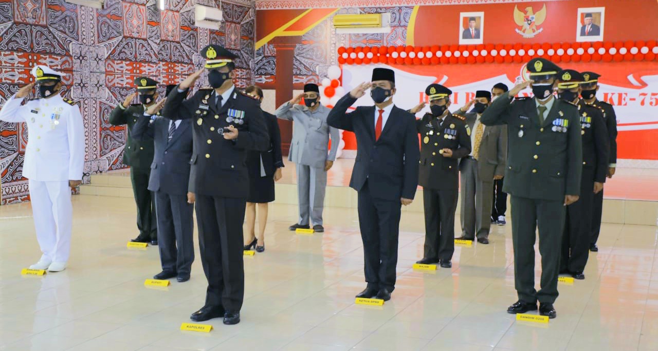TASLABNEWS, ASAHAN – Bupati Asahan H Surya BSc, Kapolres Asahan, Ketua DPRD, Kajari, Ketua PN, Dandim 0208/AS (mewaki), Danlanal TB/AS (mewakili) dan Danyonif 126/KC (mewakili) mengikuti upacara Hari Ulang Tahun Bayangkara ke 75 Tahun 2021 secara Virtual , bertempat di Aula Wira Satya Polres Asahan, Kamis (01/07/2021).